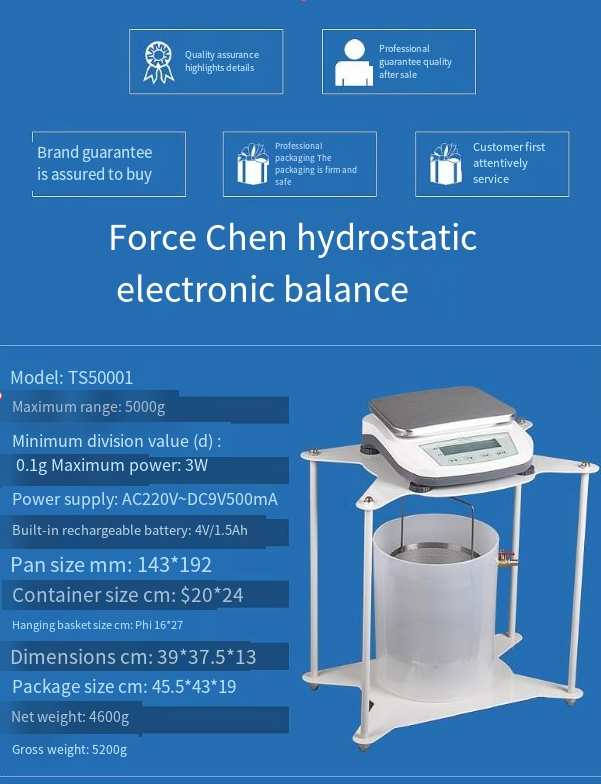 Electronic static water balance, mechanical bulk density measurement balance, 5kg 0.1g, one tenth digital display