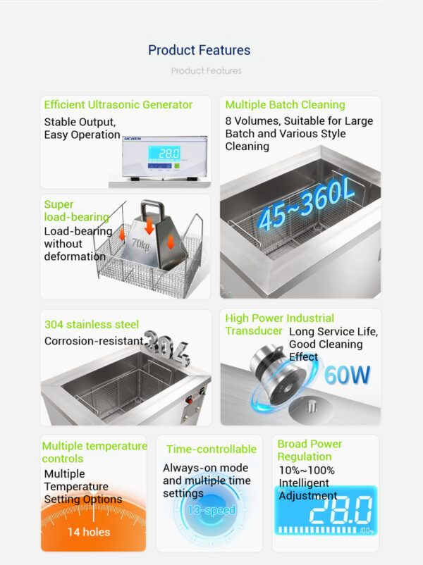 Large capacity ultrasonic cleaning machine, industrial grade commercial parts, automotive repair, fruit and vegetable large high-power cleaning tank