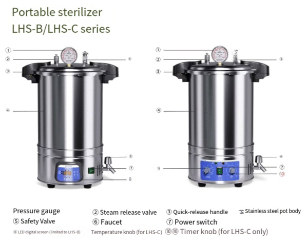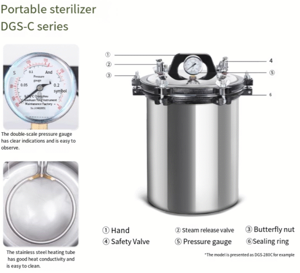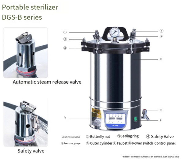 Portable stainless steel steam high-pressure sterilization pot, small disinfection pot, 50L vertical sterilizer